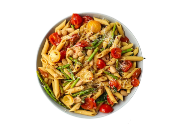 Penne, mushrooms, broccoli, spinach, tomatoes, green peppers, white sauce | 850 cal