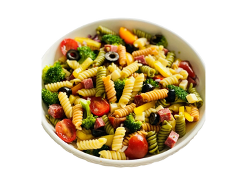 Chilled pasta, white sauce, broccoli, olives, turkey|700 cal
